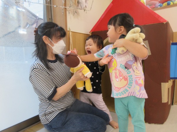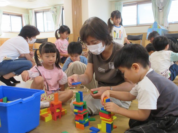 普段、保育園で遊んでいる玩具や遊びを紹介したり、沢山触れ合って遊んでいただいたりと、短い時間でしてがとても楽しそうな子ども達でした。