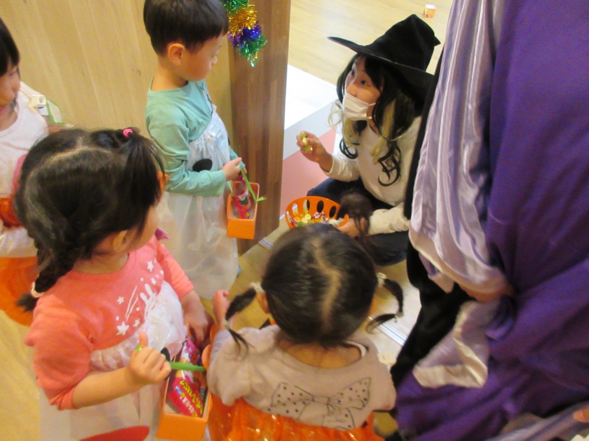 ドキドキしながら「トリック・オア・トリート!」お菓子を嬉しそうにバックに入れている様子が微笑ましい子どもたちでした。