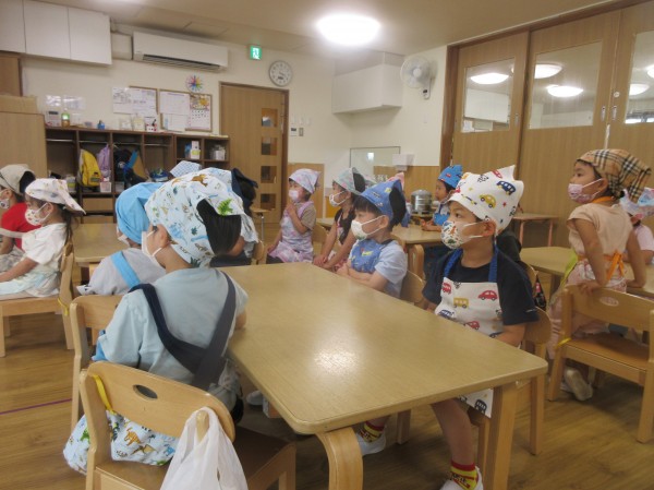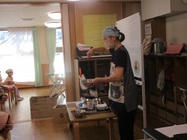 初めに、栄養士さんから材料や作り方を教えていただきました。