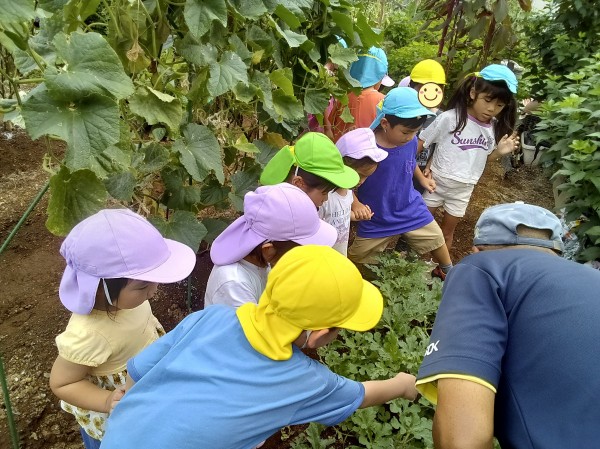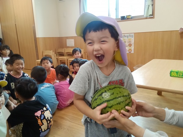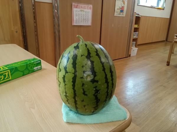 保育園にスイカを持って帰りました。