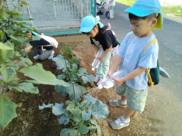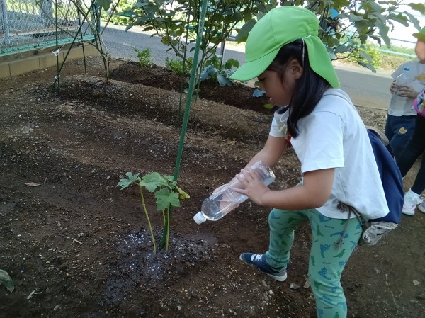 ナスが数個できていたり、じゃがいも、オクラが大きくなっていることに喜んでいた子どもたちです。