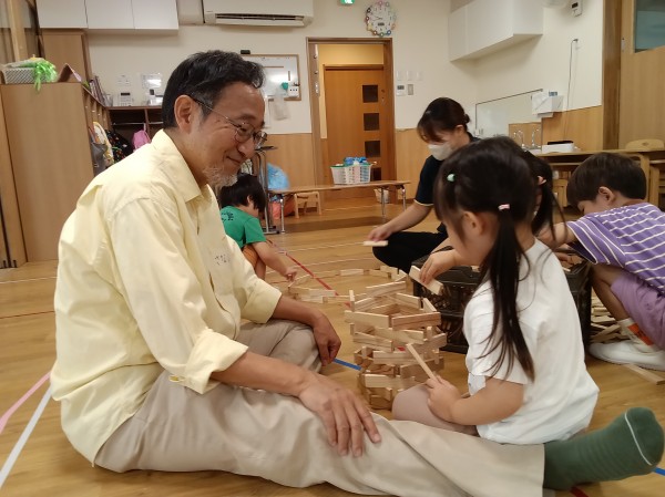 敬老の日の会の際に、祖父母の方々にお声掛けして保育園に遊びにお越しいただいています。