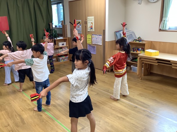 よっちょれの練習をしました。振り付けはだいぶ覚えてきているので、鳴子を鳴らすタイミングを意識して行うことや、正面見ること等、細かい部分の確認をしました。さらにその後は、短縄、長縄の特訓です。自分の目標数値を大幅に上回る結果を出す子どもたちでした。