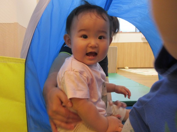 暑さが厳しくなり、室内で過ごす事が多くなりましたが、トンネルやマット遊びで全身を動かし元気に過ごしています。