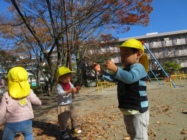 入園当初はまだ歩行が出来なかった子ども達ですが、最近では散歩の行き帰りは保育者と手を繋いで歩けるようになりました!