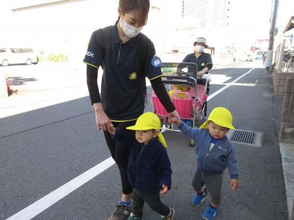 今回は0歳児ひよこ組の散歩の様子をお伝え致します。