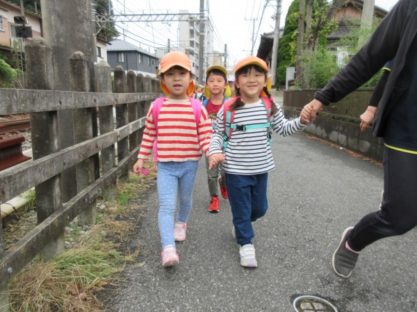 旬菜園に行くまでの道のり「大きなお芋掘れるかな?」「沢山掘るぞ~」と期待に胸を膨らませる子ども達。