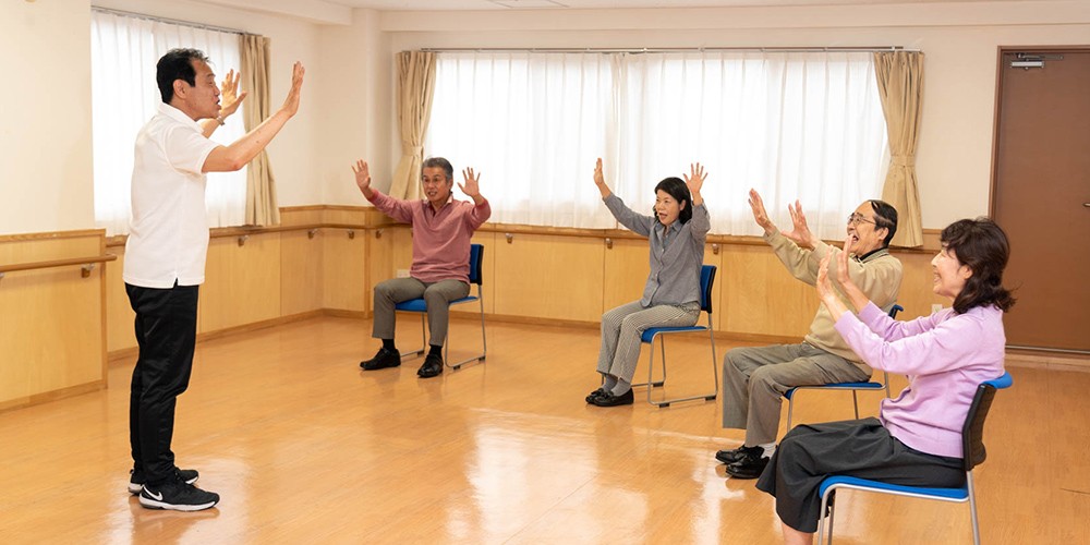 施設では食事前に毎日実施しています。皆さん意欲的に運動に参加しエネルギーを消費しているので、食事の摂取量が増えました。