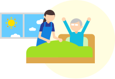 お手伝いします。 また、夜間も定期的にスタッフが見守りをいたします。