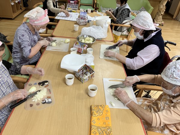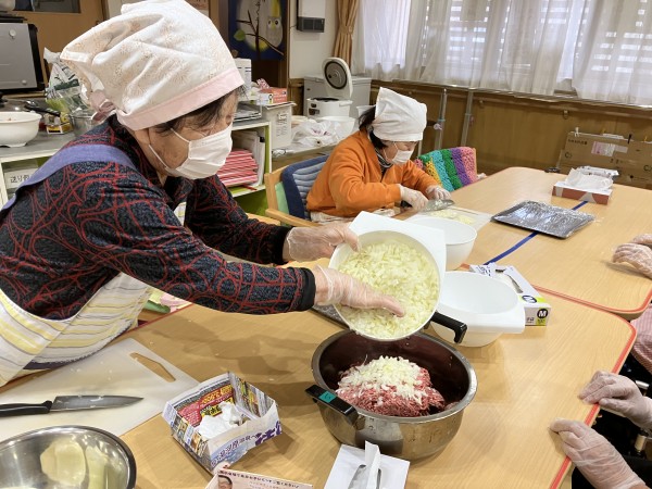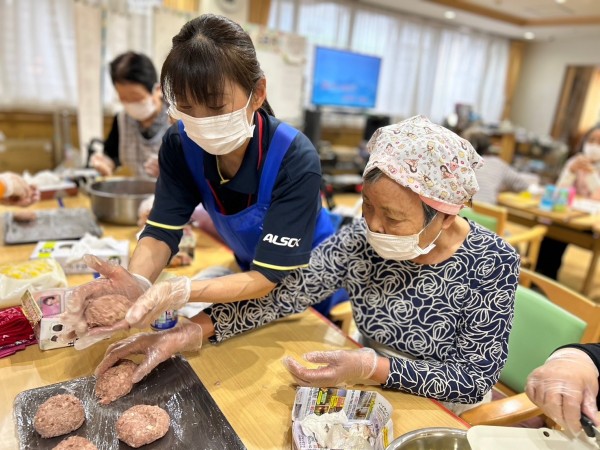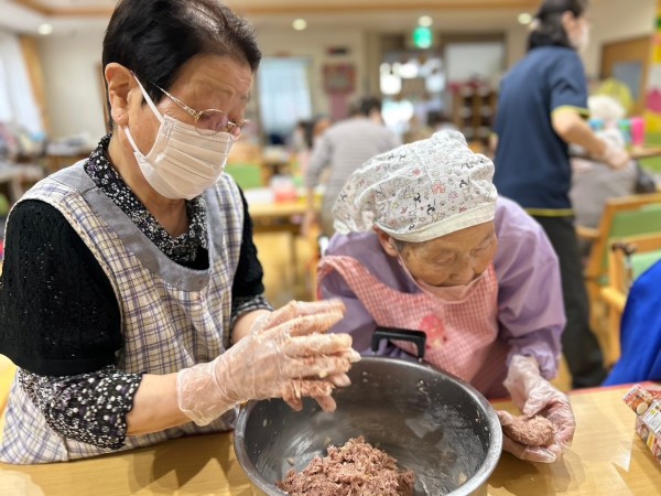 もちろんこの日もご利用者様と一緒にハンバーグ作り