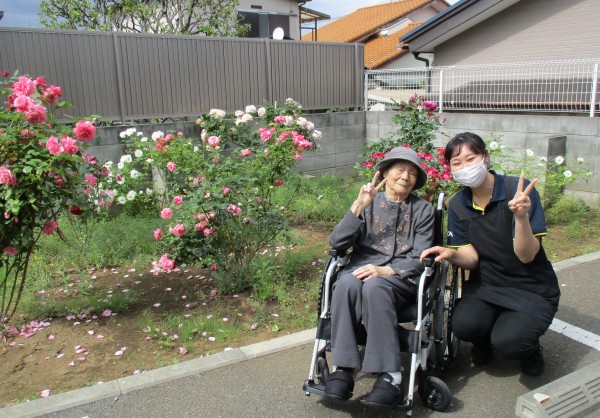 窓から眺めていたバラを近くで見られて、笑顔とお話が弾んだ楽しい時間でした。