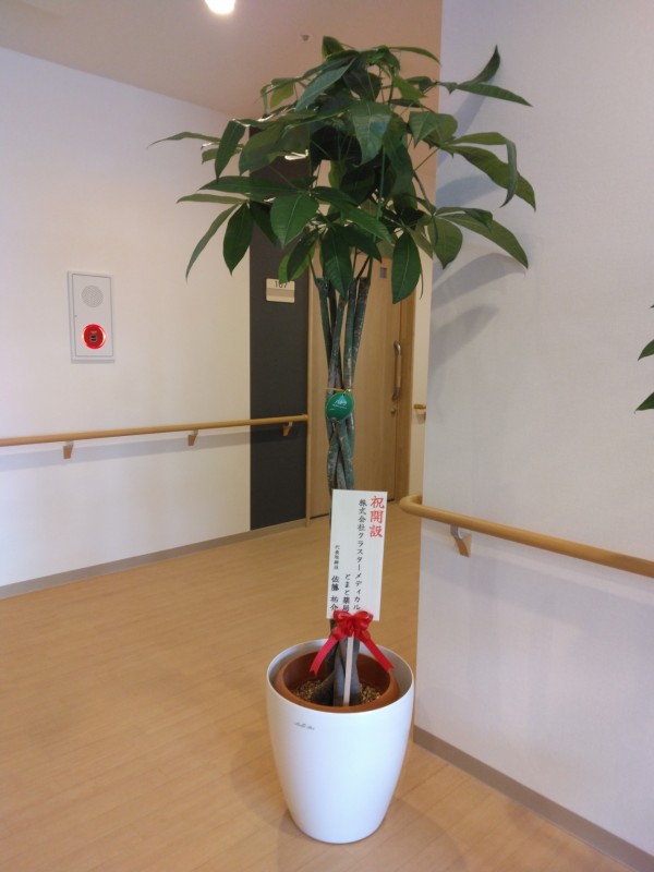 本日、「株式会社クラスターメディカル とまと薬局様」より、開設のお祝いに観葉植物が届きました。