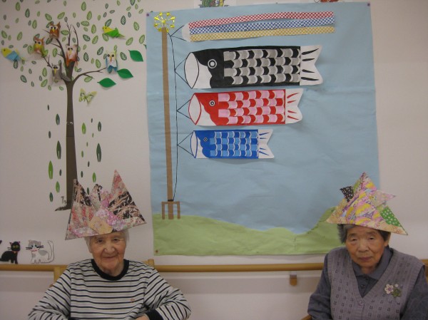 1階で端午の節句に兜を被り写真撮影しました( ^ω^)・・・ 綺麗に撮れましたか? まあまあかな?とお喋りしました(*^_^*)