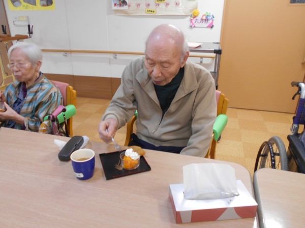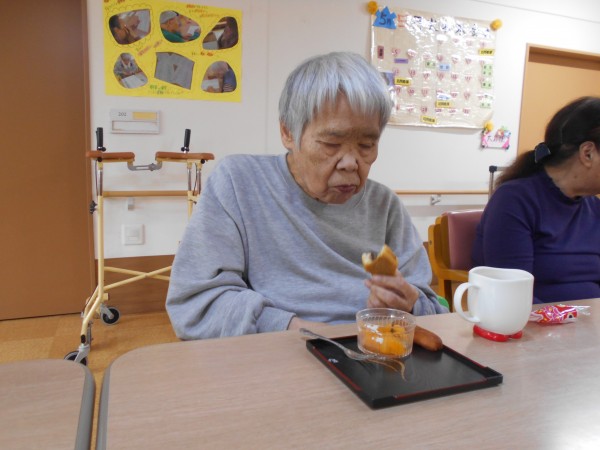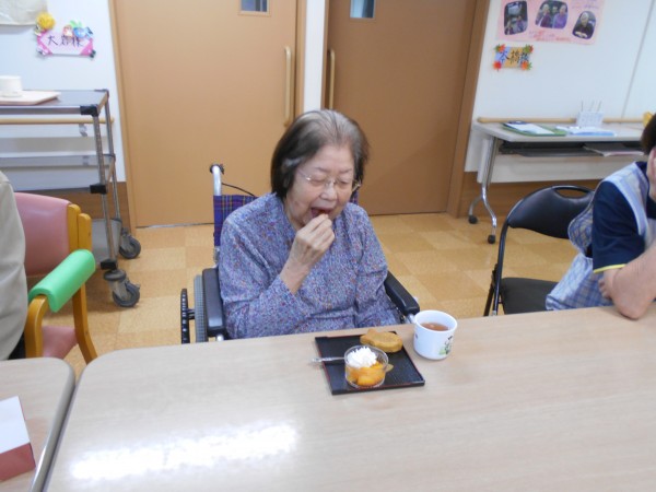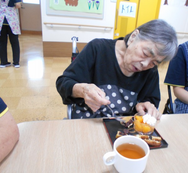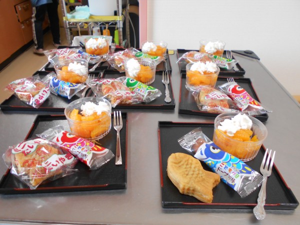 おやつはミニたい焼き、みかんにホイップクリームをトッピングしたものなど提供させていただきました♪