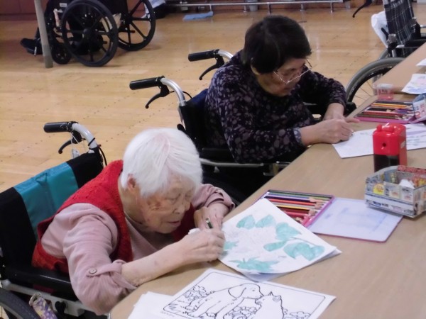 本日は、本館・入居者様の塗り絵の作品をご紹介します!