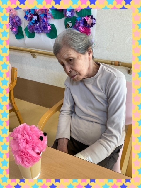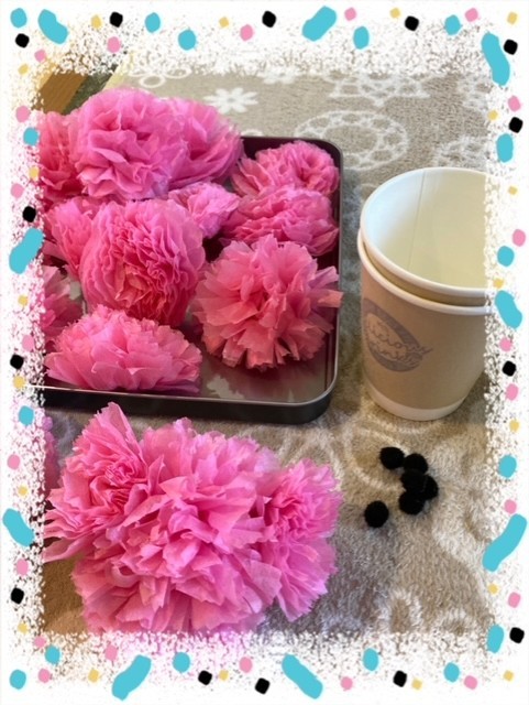 カーネーションのワンちゃんをお花紙で作りました~(*^-^*)