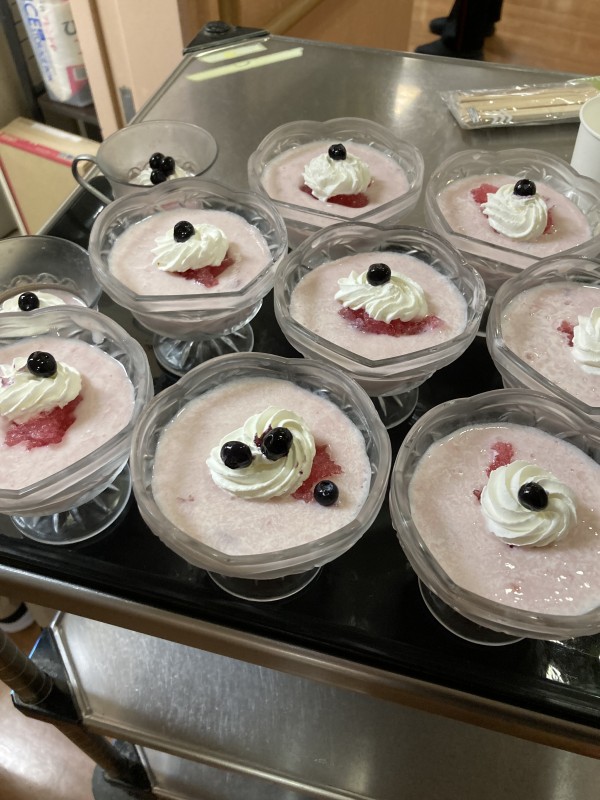 出前の昼食を終え、フラワーアレンジメント作りを楽しまれた後デザートをいただきましたのでその様子を伝えていきたいと思います。