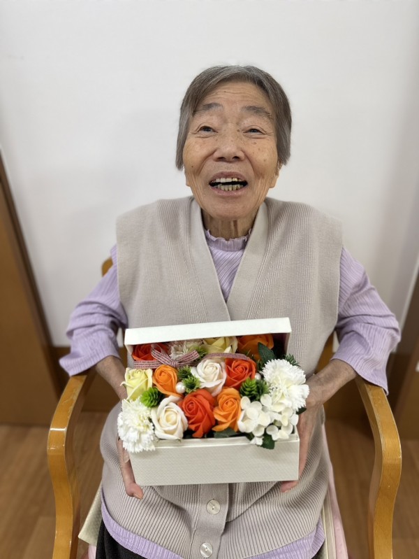 ◉ご家族様からのプレゼントに大喜びのご入居様♡素敵なお花にお部屋がパッと明るくなりますね♬
