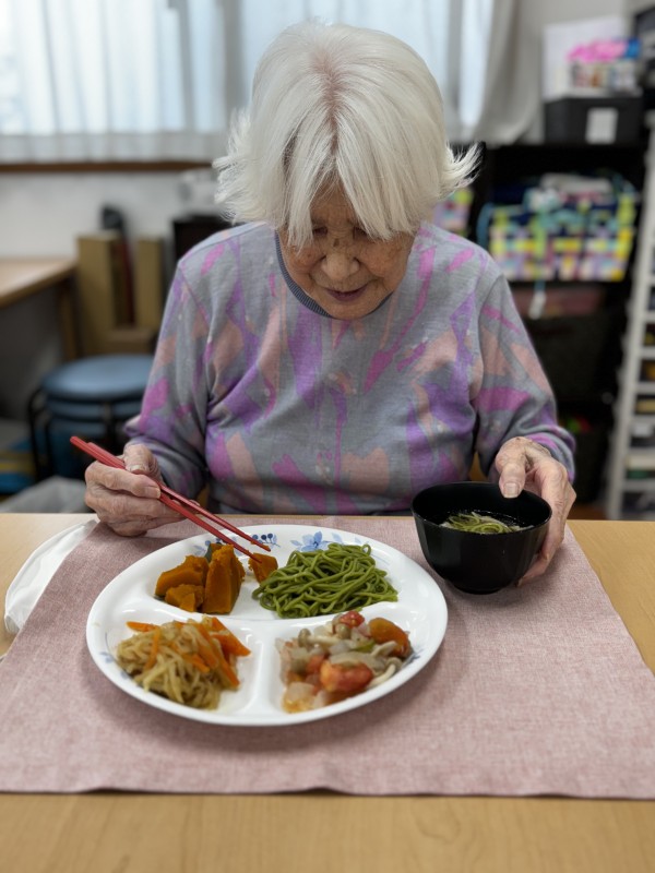 とても緑が綺麗なお茶で出来たお蕎麦です!