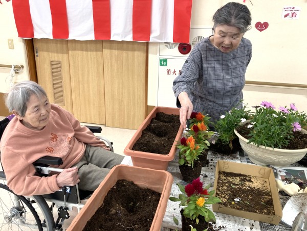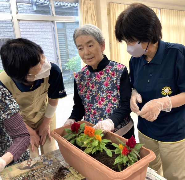 鉢とお花を選んで~。皆さん慣れたもので手際が良いです(^_^)v