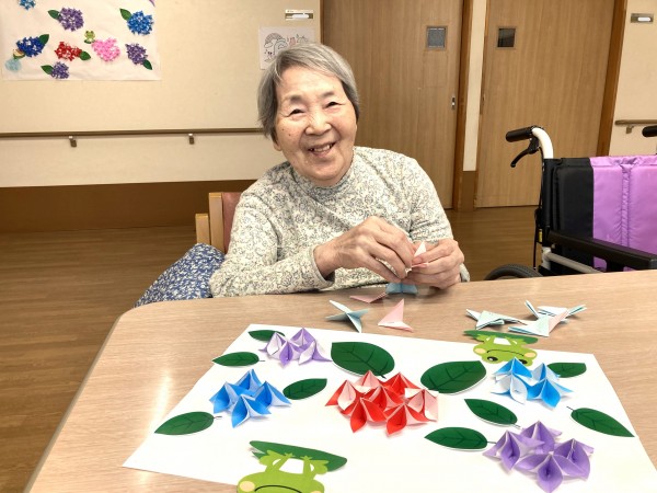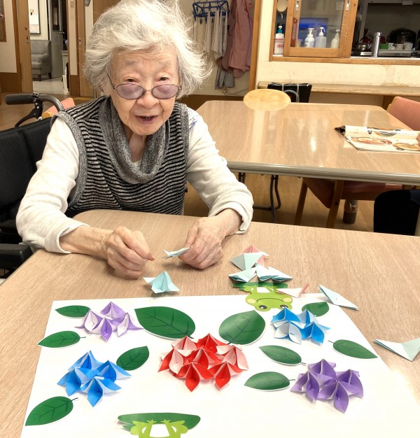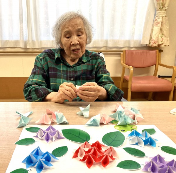 こちらは壁に飾るあじさいを手作り(*´▽`*)
