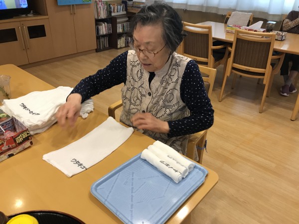 コップ拭きの職人さんと、おしぼりを丸める職人さんです(o^―^o)ニコ