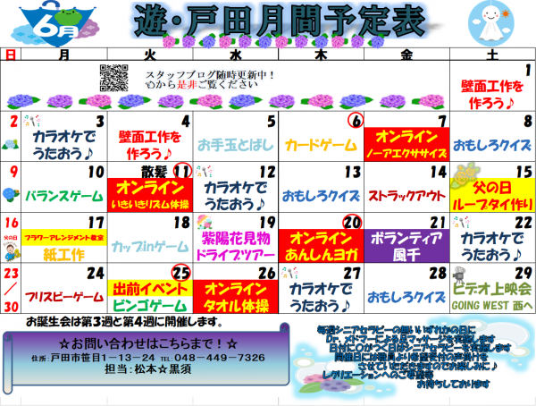 6月のレクリエーションカレンダーをご紹介♡