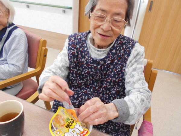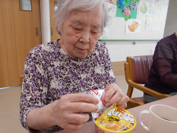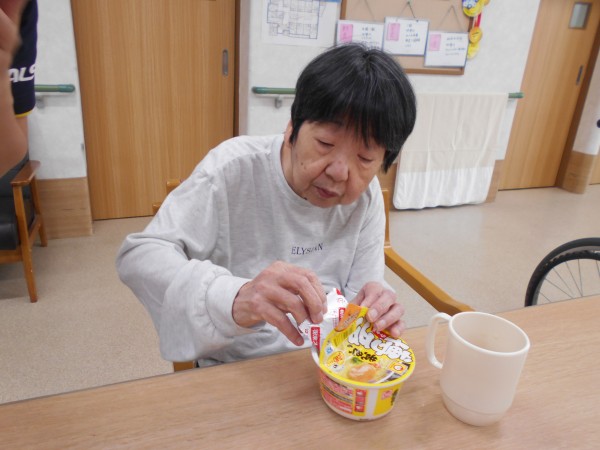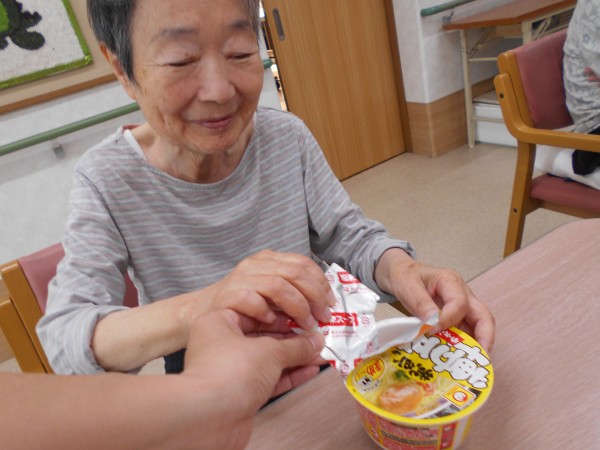 カップラーメンのかやくを1人1人に入れて頂きました(^^♪