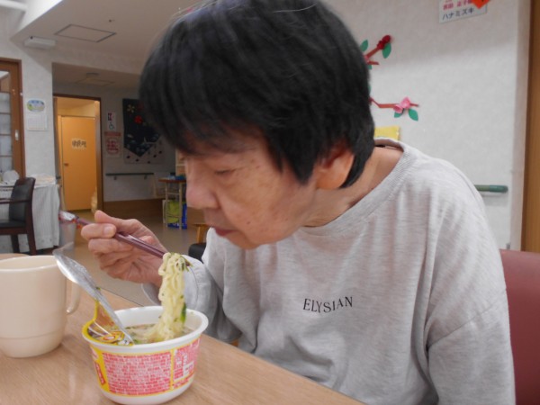 おやつにカップラーメンを召し上がった時のご様子をお伝え致します。