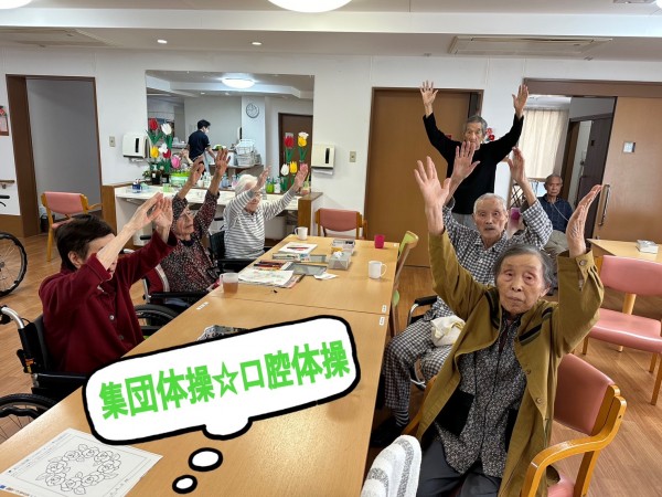 さて、二階フロアでは、本日も皆様♡お食事前に『集団体操・口腔体操・早口言葉』に大変意欲的に参加されていました⭐︎