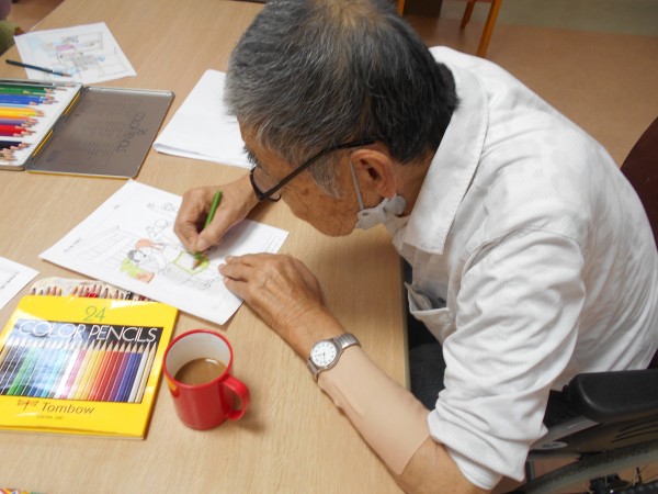 先日、ホームにて塗り絵レクを行いました。