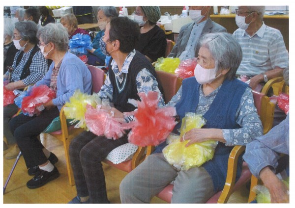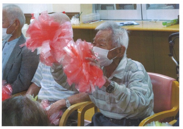 本日午後のレクリエーションは【チアダンス】チアダンスチーム『Ruby』の皆様によるボランティア公演です。様々なノリの良い曲に合わせ繰り広げられるチアダンスを前に、皆様も一瞬で引き込まれポンポンを振りながらリズムを取っていらっしゃいました。一緒に踊る曲もありとても楽しんでいらっしゃるのがよくわかりました。『Ruby』の皆様、今回もデイサービスを明るく元気に応援してくださりありがとうございました♪