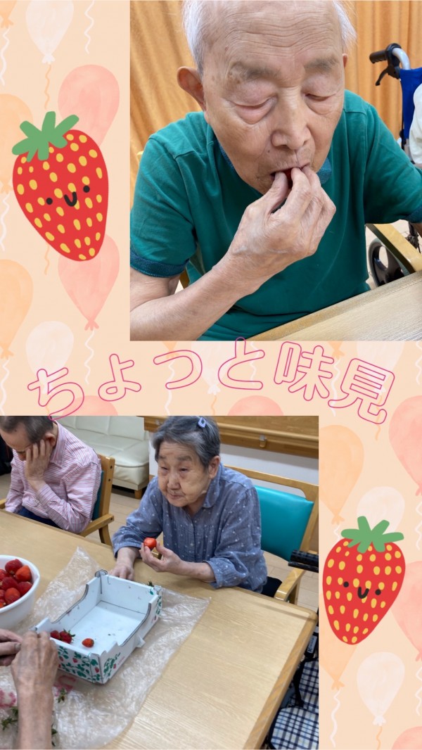 金子ホーム長がイチゴジャムを作りましょう!っという事でたくさんの甘酸っぱい香りが漂うイチゴが集まりました♡