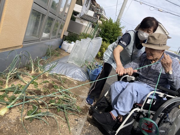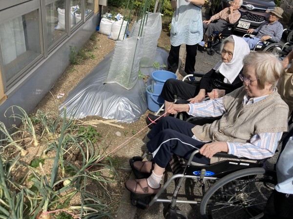 車いすの方は葉の根元に括り付けた紐を引っ張ってもらい収穫しました(^^)/