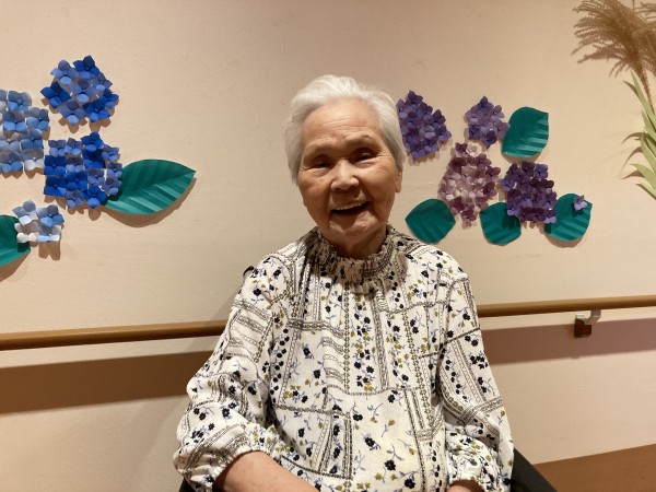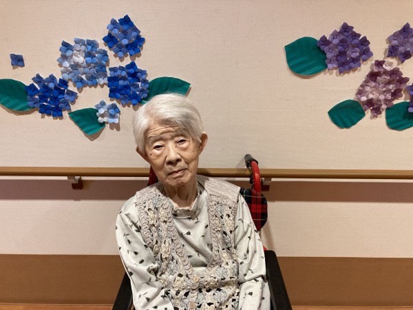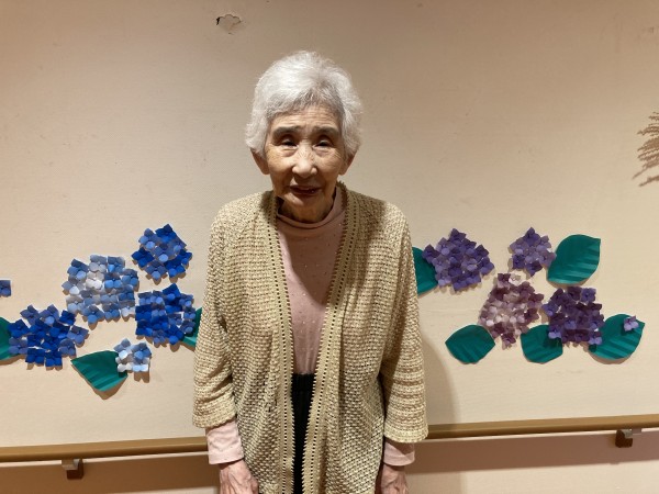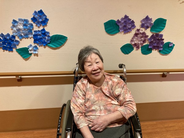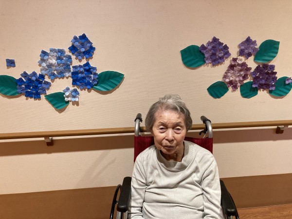 皆様、折り紙の紫陽花の前で、ハイ♪チーズ♪