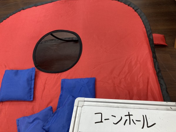 本日は『コーンホール』というゲームで遊びました!ルールは簡単!穴を狙って投げ入れろ~☆