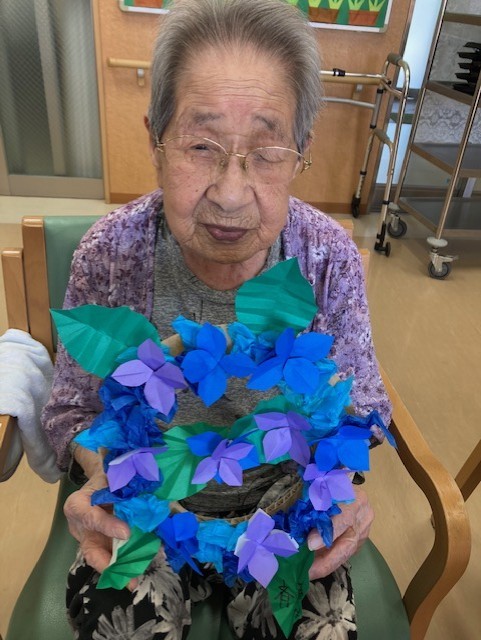 利用者様とご一緒に紫陽花の飾り作りを行いました(^^♪