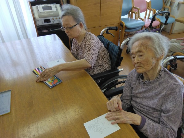 どの絵柄にしようかやどの色で塗るかたくさん悩みながらも楽しく作れた創作レクリエーションの時間でした!