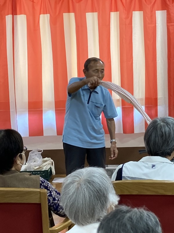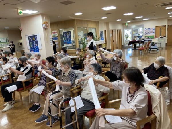 タオルを持って、一歩会の方々の動きに合わせました。中々難しかったです(笑)