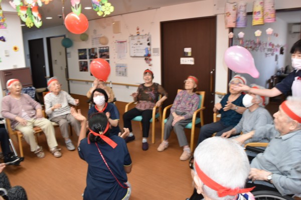 制限時間内で風船を床に落とさないように皆様が大奮戦!