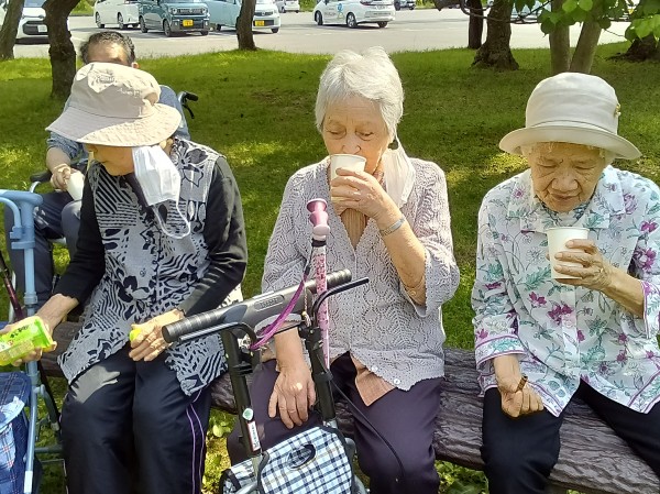 あじさいを眺めながら外でおやつ♪なかなかできない事なので優雅に楽しんでます(*'ω'*)