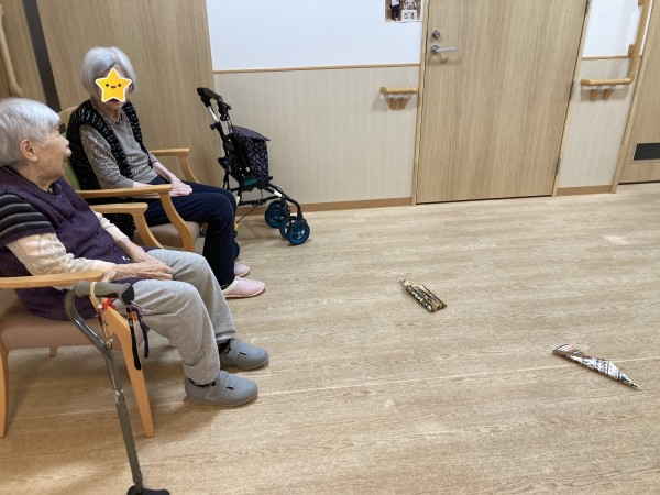 外気浴もできず入居者様達も少し退屈そうでしたので、みんなで紙飛行機大会を開催しました!