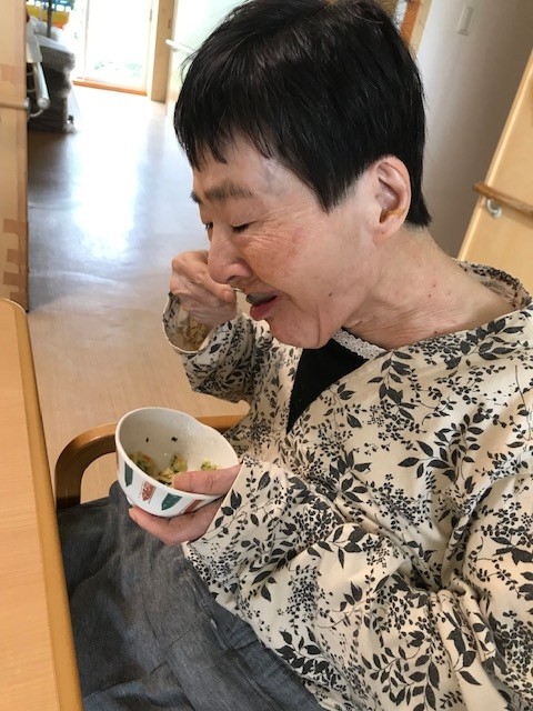 「おいしいわね」、「自分で作ったからおいしい」と