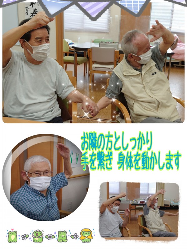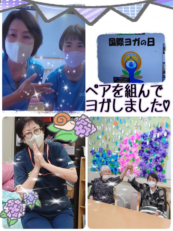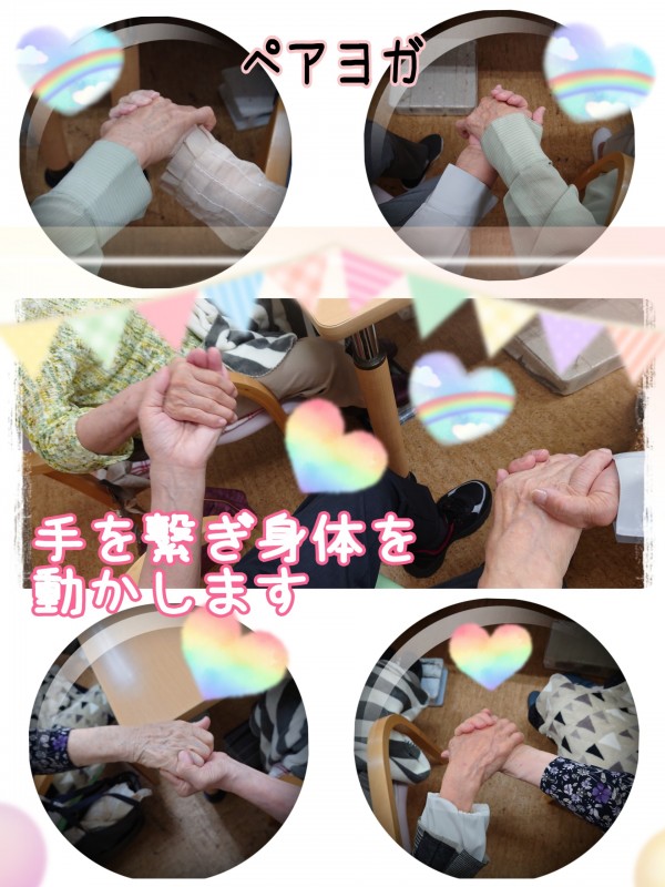 ペアヨガはお隣の方と手を繋いでをポーズを取ったり、