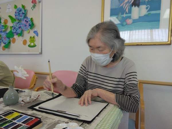 介護付き有料老人ホーム「アミカの郷流山」6月の絵手紙教室!