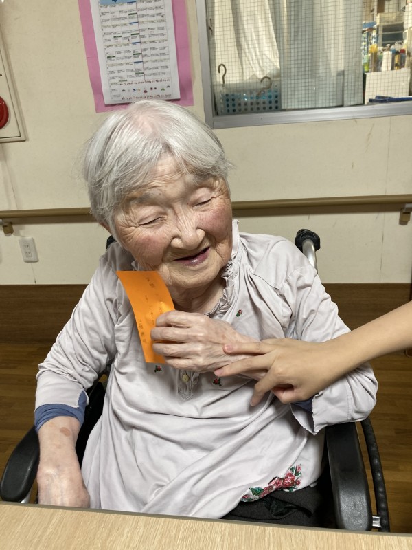 雨の日にフロアで出来る事を探して、七夕様の短冊にお願い事を書きました。