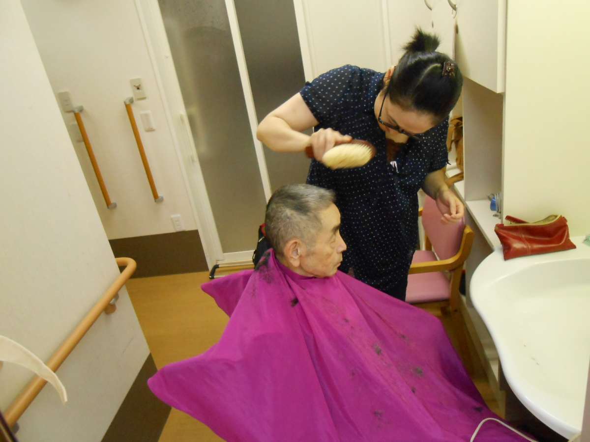 10月の7日に理美容師さんがこられ、髪の毛を切っていただきました。
