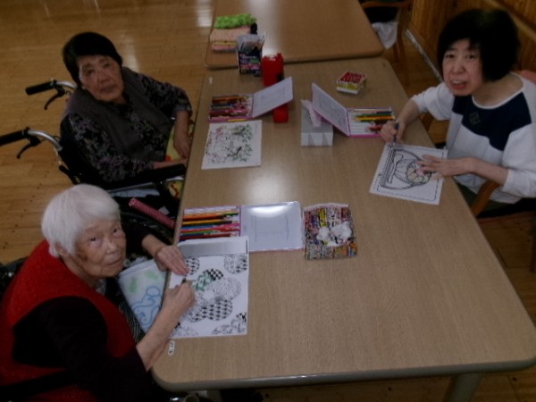本日は、本館・入居者様の塗り絵の作品をご紹介します!