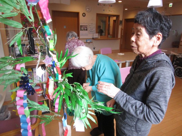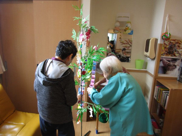 折り紙で飾りを作ったり、短冊に願い事を書いたり、ワイワイと楽しそうです(^^♪