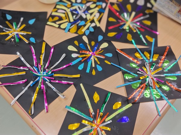 ある程度材料が出来たら花火にみたてて貼り付けの工程に♪